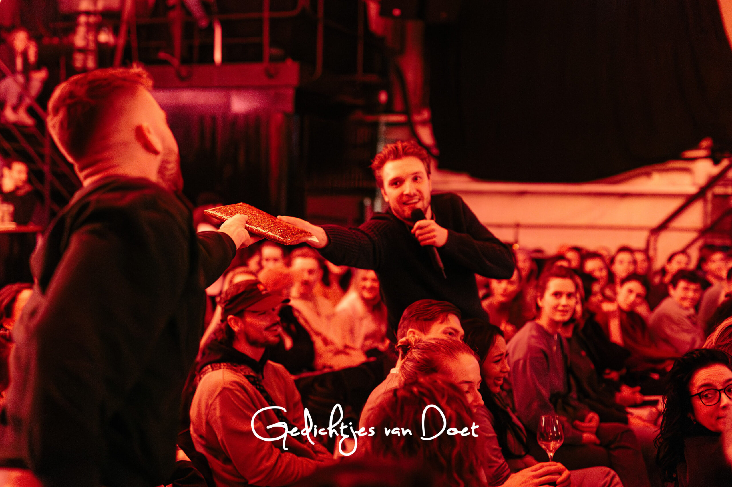 Ik draag veel voor op andermans feesten en partijen, maar organiseer ook mijn eigen evenementen. Dit was 07/03/24 in Levenslang Amsterdam. We hebben gelachen, that’s for sure.