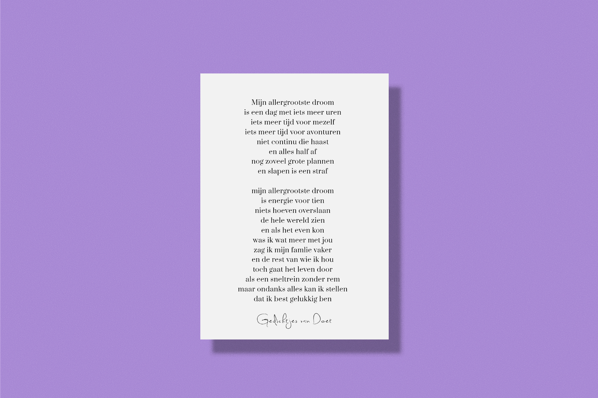 Als cadeau voor een vriend of vriendin, of gewoon voor jezelf. Heb je een leuk gedicht voorbij zien komen? Ieder gedicht is op poster verkrijgbaar.